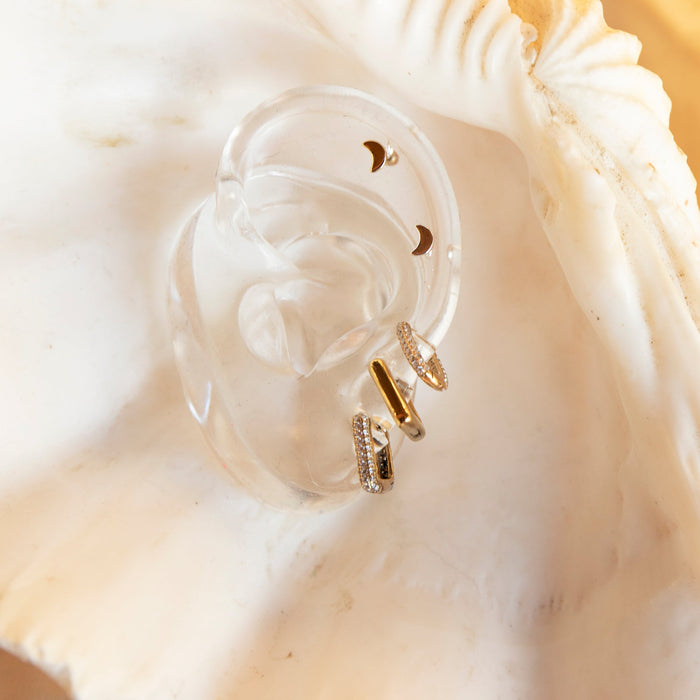18ct Gold Vermeil Tiny Moon Barbell Stud Earring