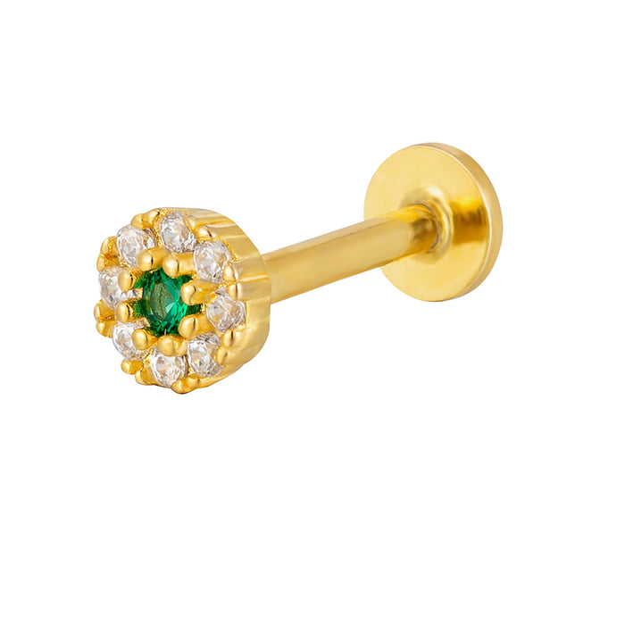 18ct Gold Vermeil Tiny Emerald CZ Labret Stud Earring