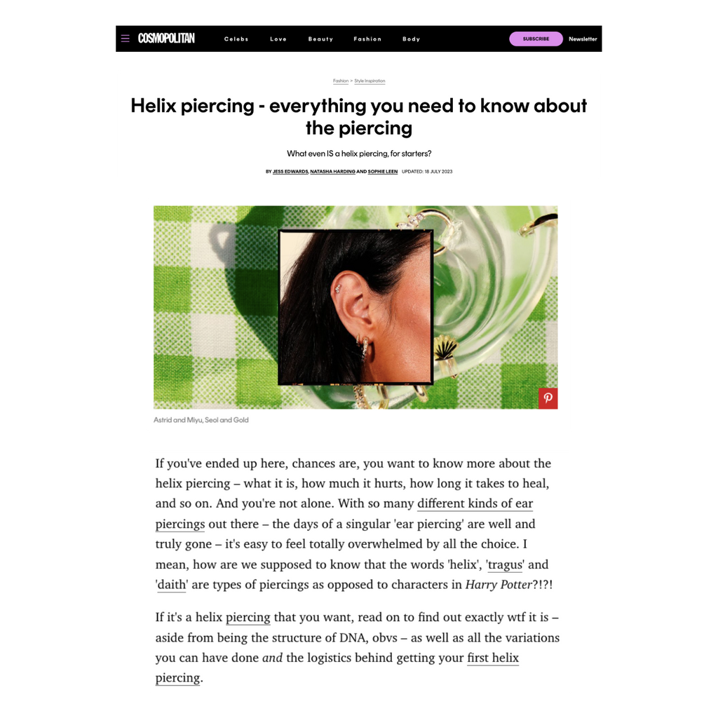 Cosmopolitan By Seol+Gold Team July 20, 2023 Cosmopolitan, Helix piercing - everything you need to know about the piercing, 18 July 2023