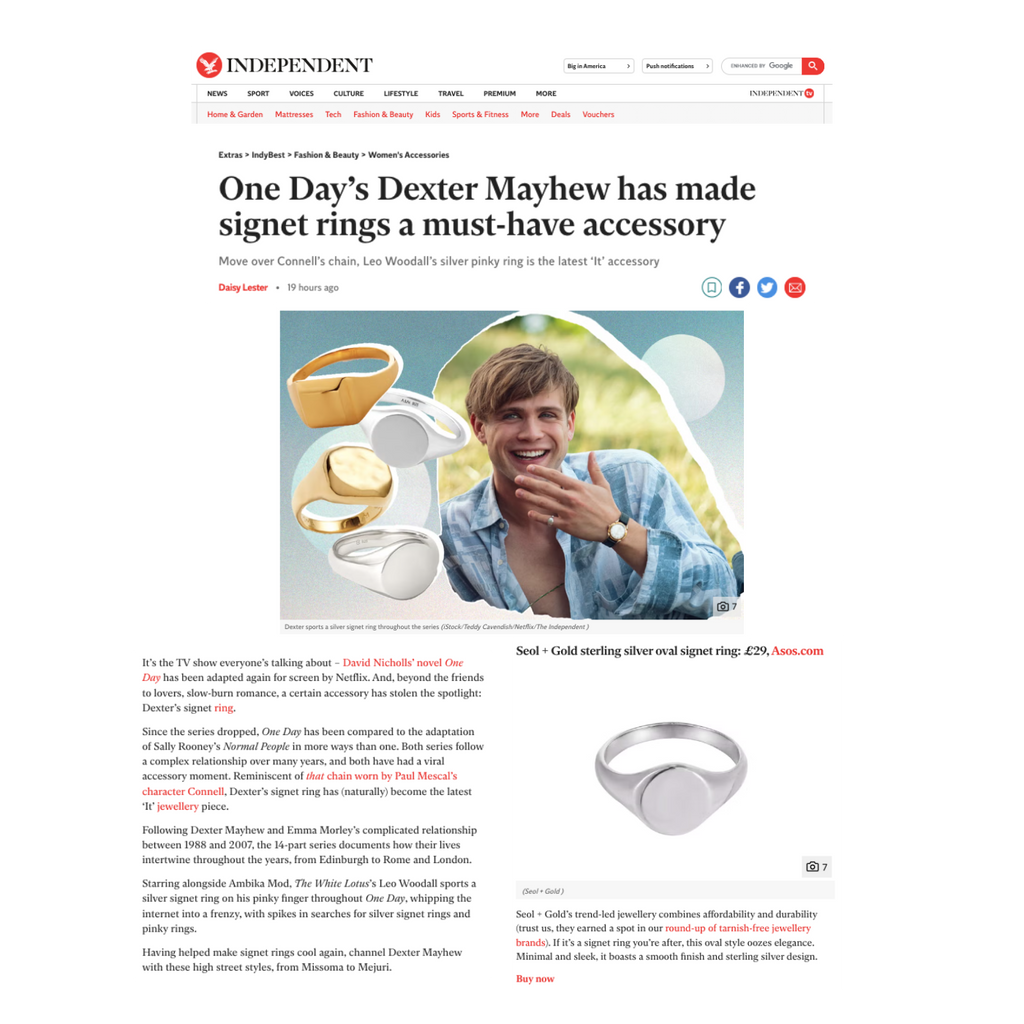 Independent By Seol+Gold Team February 21, 2024 Independent, Leo Woodall’s signet ring is almost as popular as Netflix’s One Day – here’s where to shop, 20 February 2024