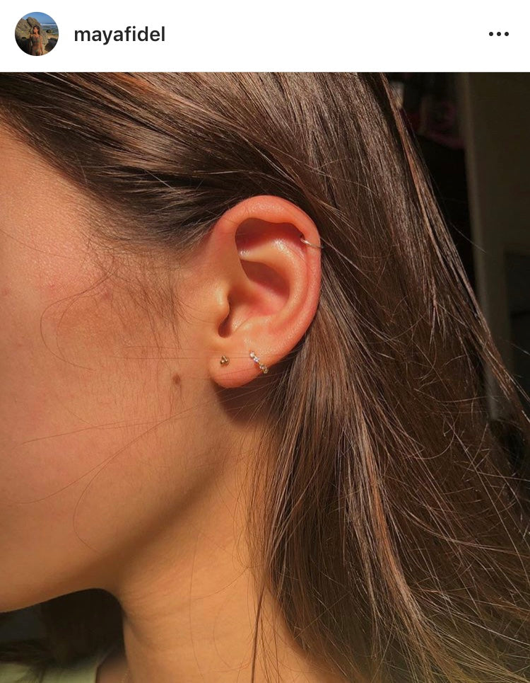 @mayafidel By Seol+Gold Team July 8, 2019 @mayafidel wears 9ct gold tiny triple dot studs & 9ct gold tiny CZ hoops