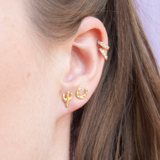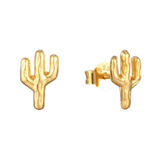18ct Gold Vermeil Tiny Cactus Stud Earrings