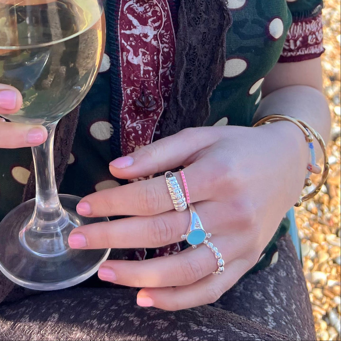 All our jewellery is made from either Sterling Silver, 18ct Gold Vermeil, 9ct Solid Gold or 14ct Solid Gold. As these are precious metals they won’t ‘rust’ like costume jewellery, they aren’t going to leave a weird green mark and they have serious longevity – especially with our care tips.