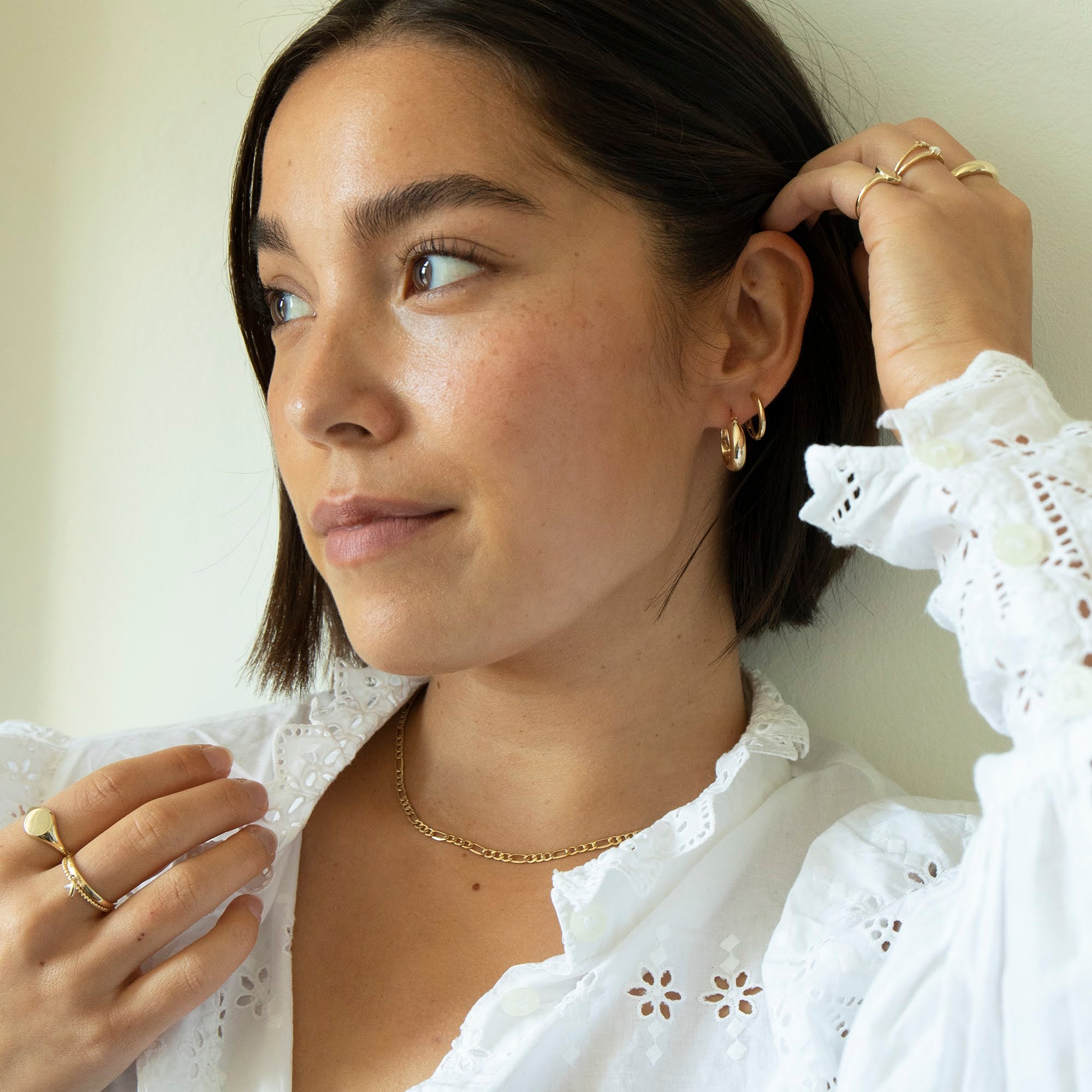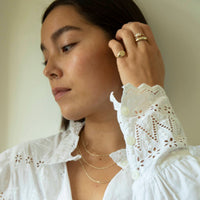 All our jewellery is made from either Sterling Silver, 18ct Gold Vermeil, 9ct Solid Gold or 14ct Solid Gold. As these are precious metals they won’t ‘rust’ like costume jewellery, they aren’t going to leave a weird green mark and they have serious longevity – especially with our care tips.