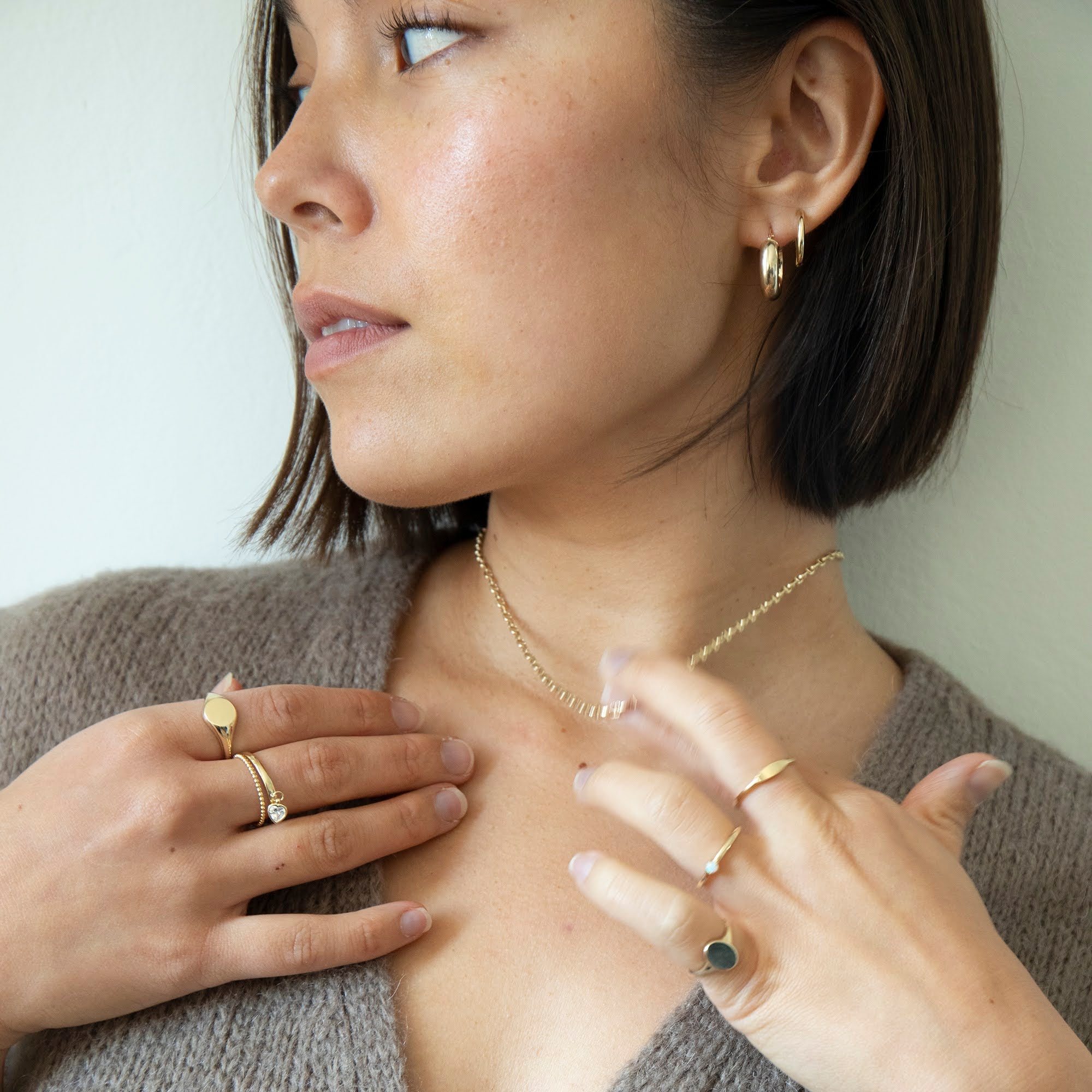 Solid Gold is like the superhero of metals—tough, shiny, and is unlikely to tarnish, making it perfect for everyday wear. To keep your gold jewellery sparkling like new, give it a regular clean. Grab a soft, lint-free cloth or, for extra sparkle power, a gold polishing cloth. With just a little TLC, your gold will sparkle like it’s brand new!
