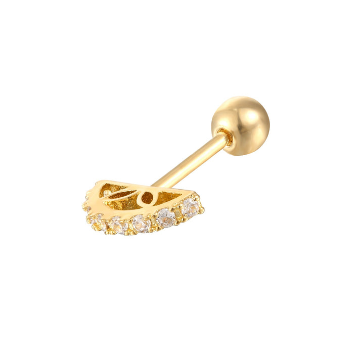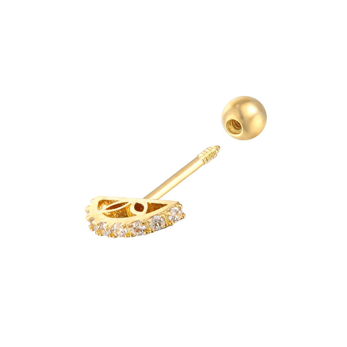 9ct Solid Gold CZ Crescent Moon Barbell Stud Earring