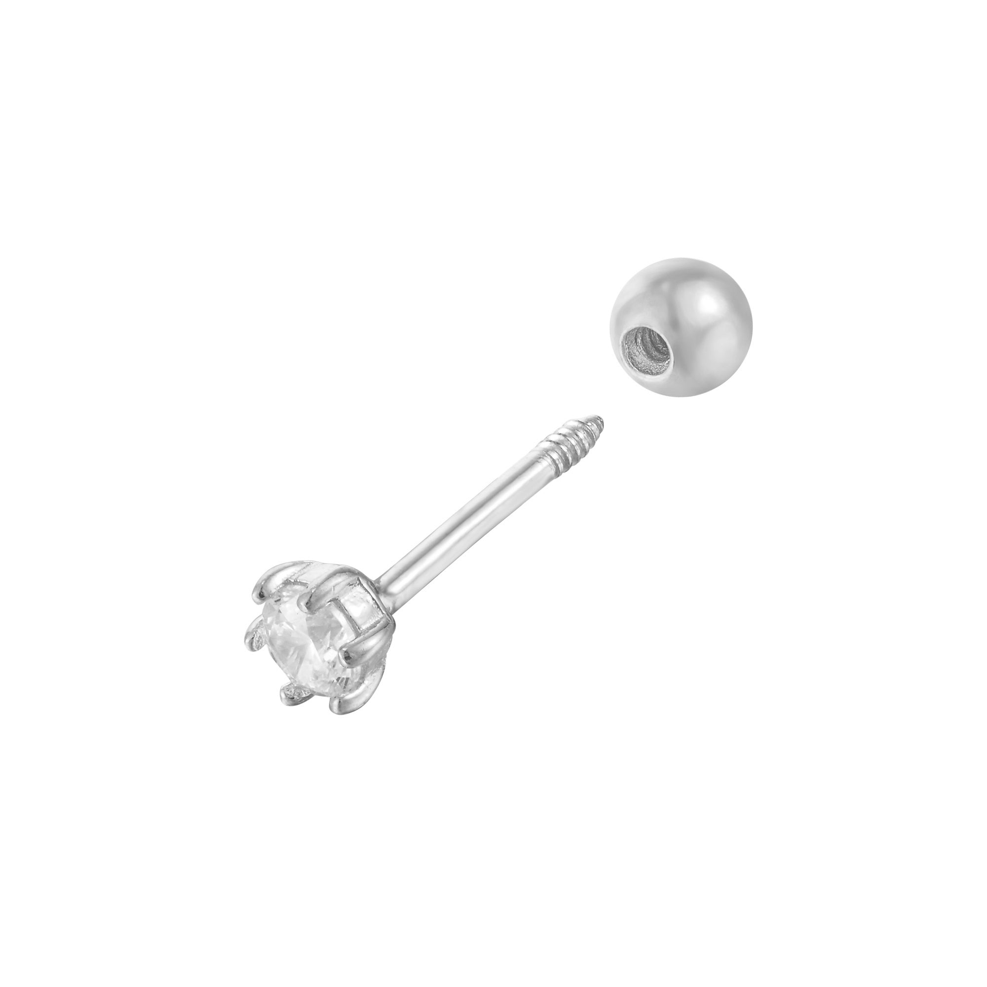 9ct Solid White Gold Cubic Zirconia Barbell Stud