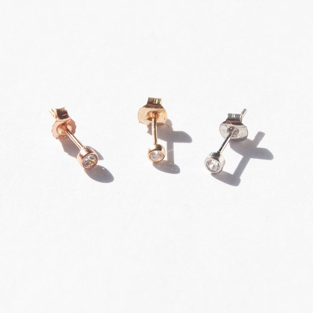 9ct Solid Rose Gold Tiny CZ Bezel Studs