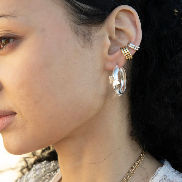 Sterling Silver Butterfly Hoops