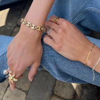 To give your jewellery a quick freshen up we suggest cleaning with a soft, lint-free cloth or, for extra sparkle power, a gold polishing cloth. But be gentle, avoid rubbing, as this will bring the gold plate off your piece.