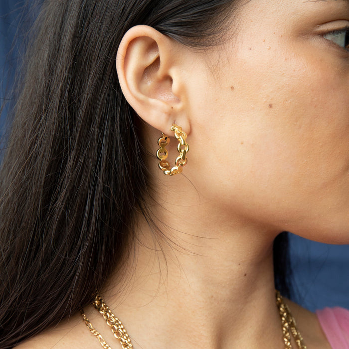 18ct Gold Vermeil Anchor Chain Hoop Earrings