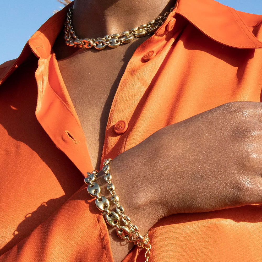 18ct Gold Vermeil Puffed Mariner Bracelet