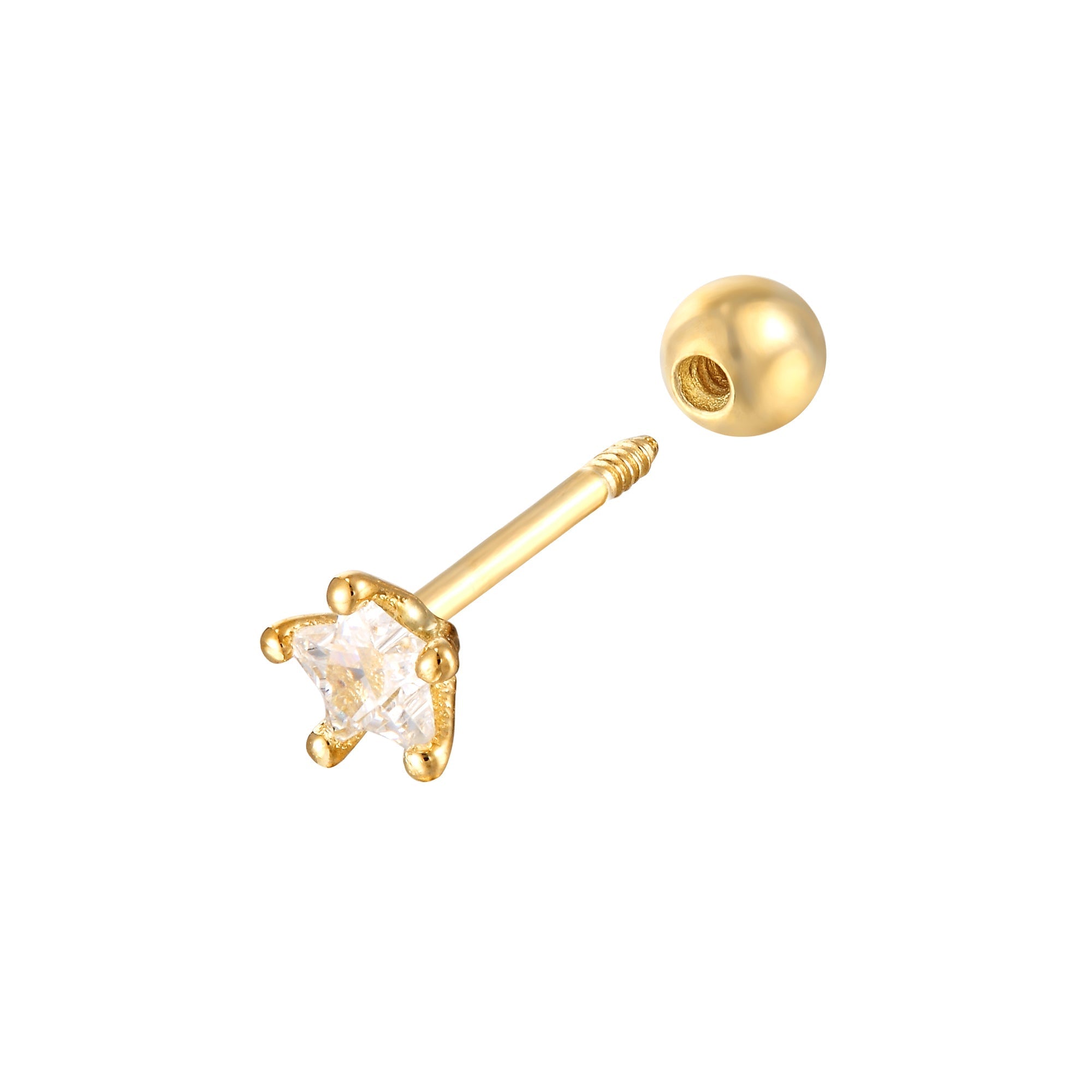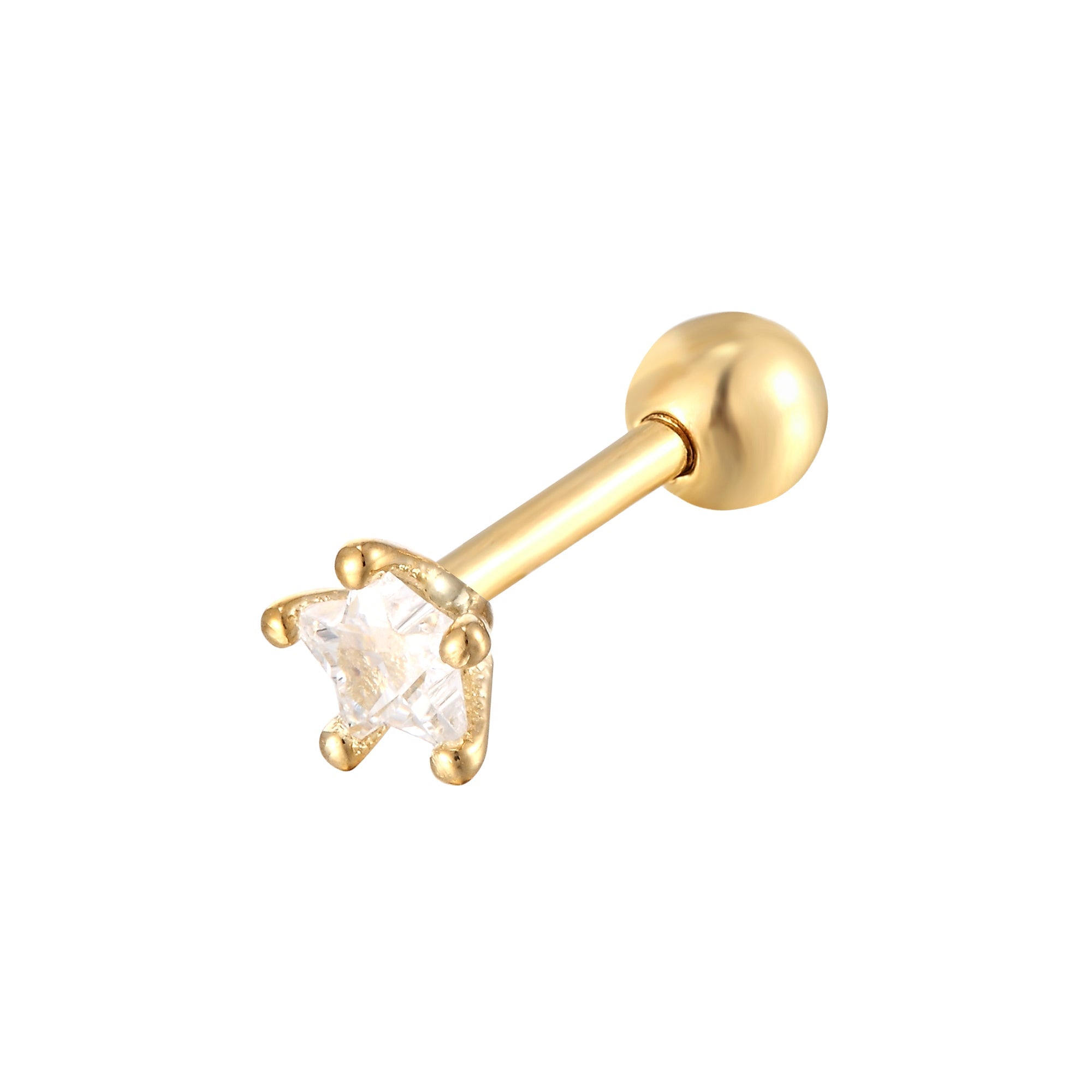 9ct Solid Gold Star CZ Barbell Stud Earring