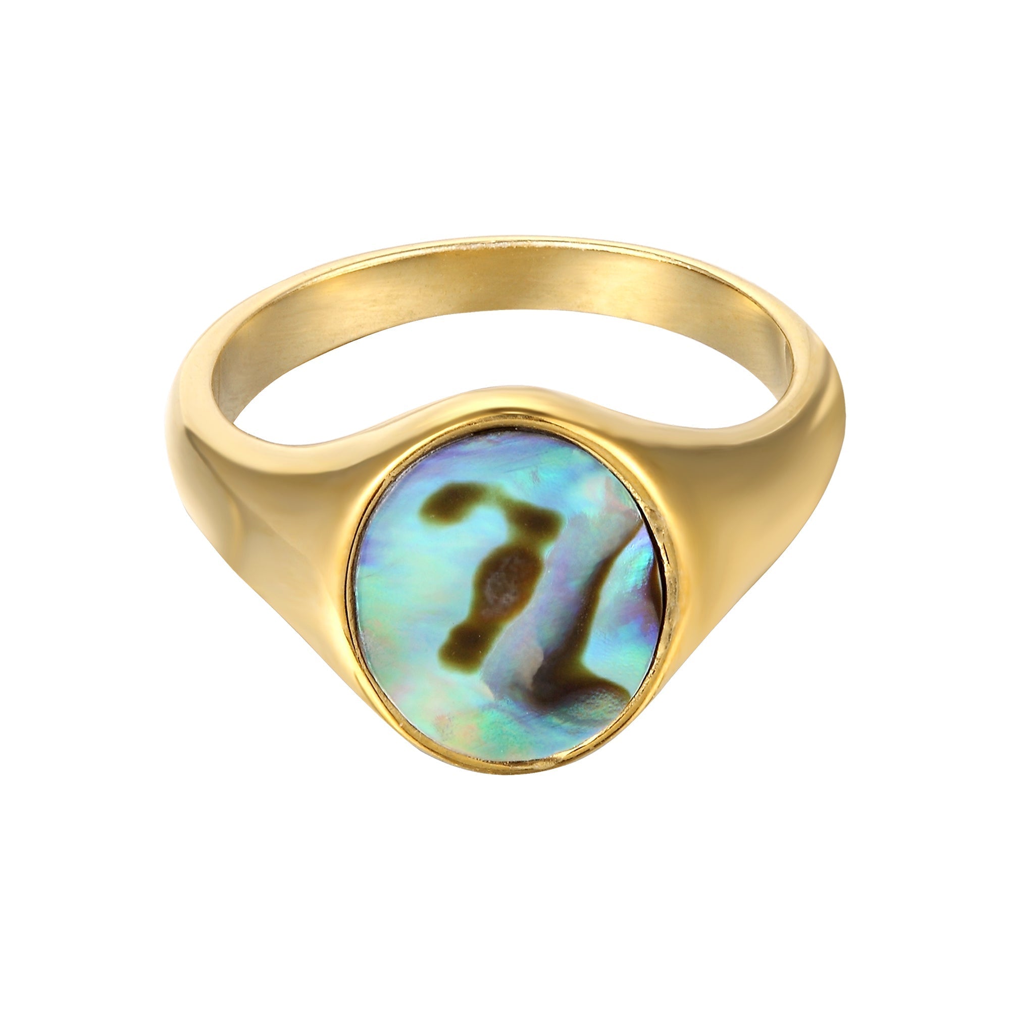 Abalone shell oval signet ring.