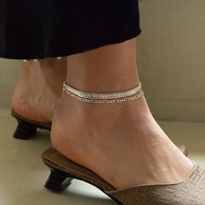 Sterling Silver Fine Figaro Chain Anklet