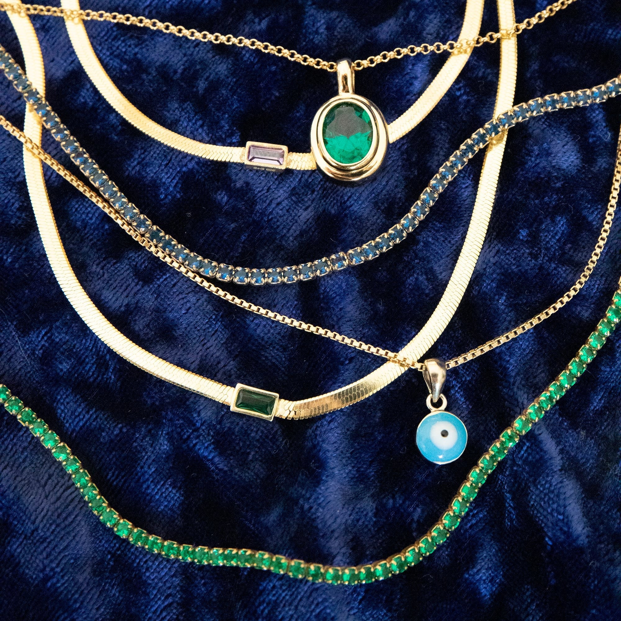 18ct Gold Vermeil Emerald CZ Tennis Choker
