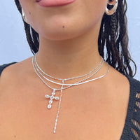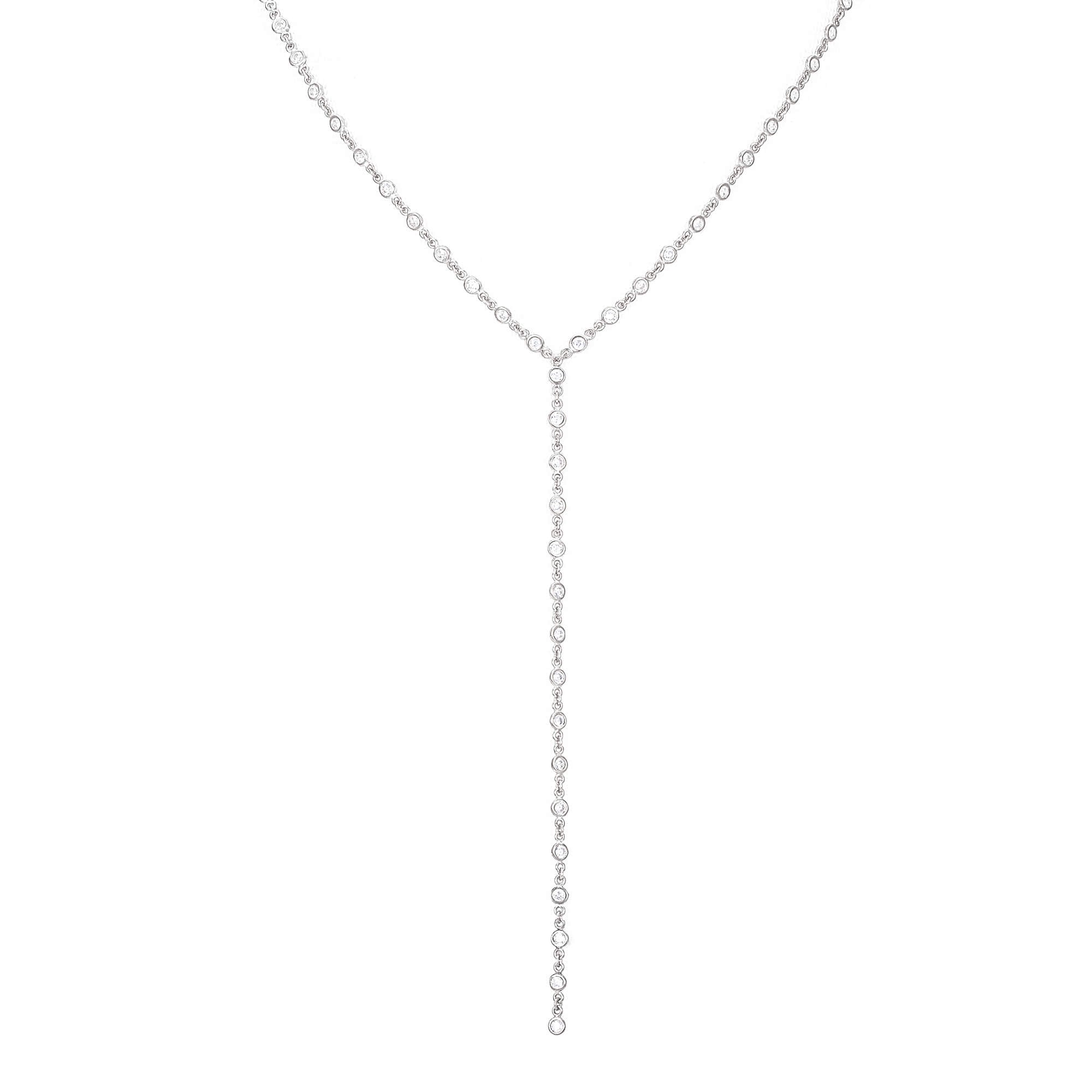 Sterling Silver CZ bezel Lariat Y Chain Necklace