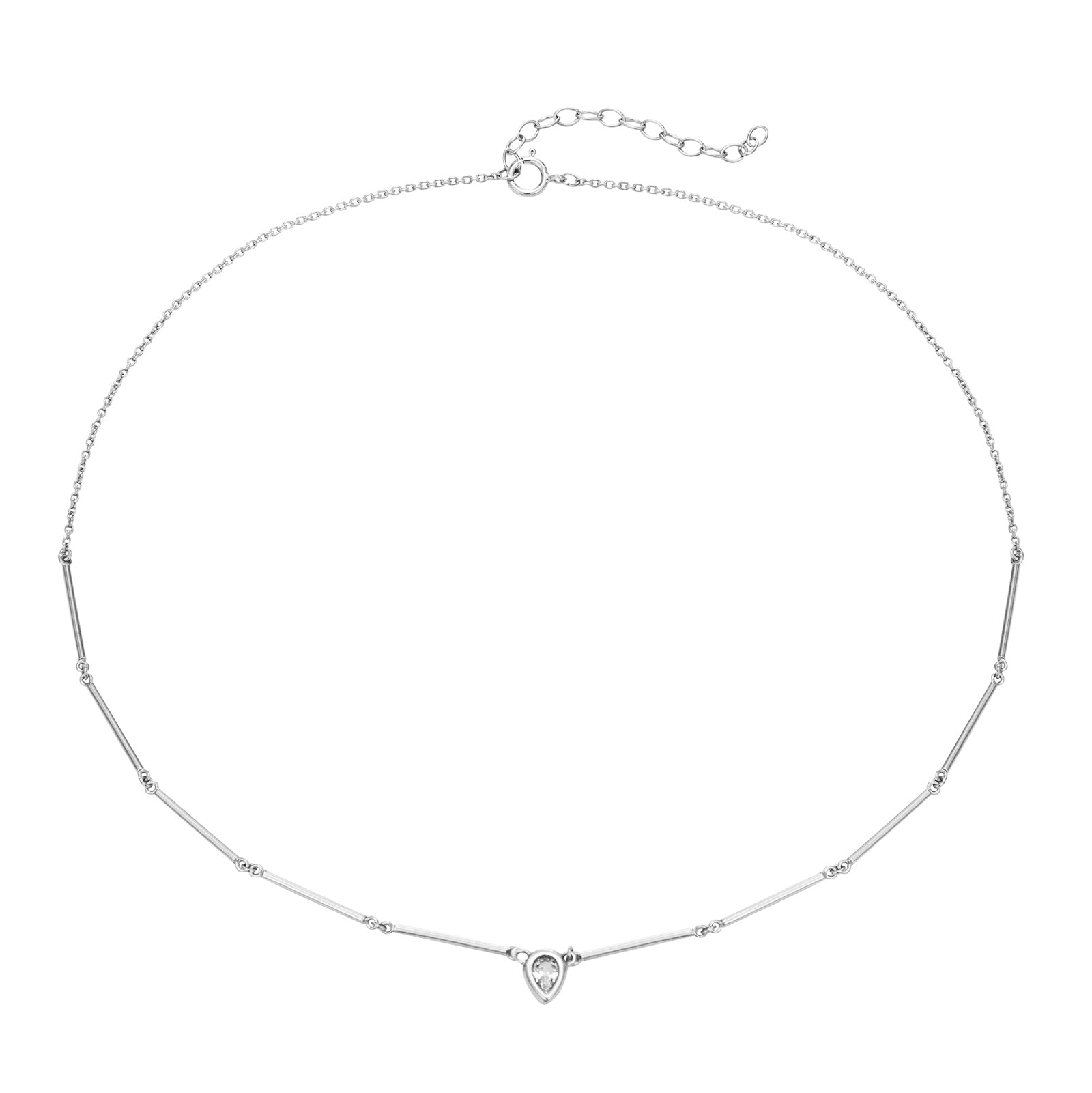 Sterling Silver Teardrop CZ Link Necklace.