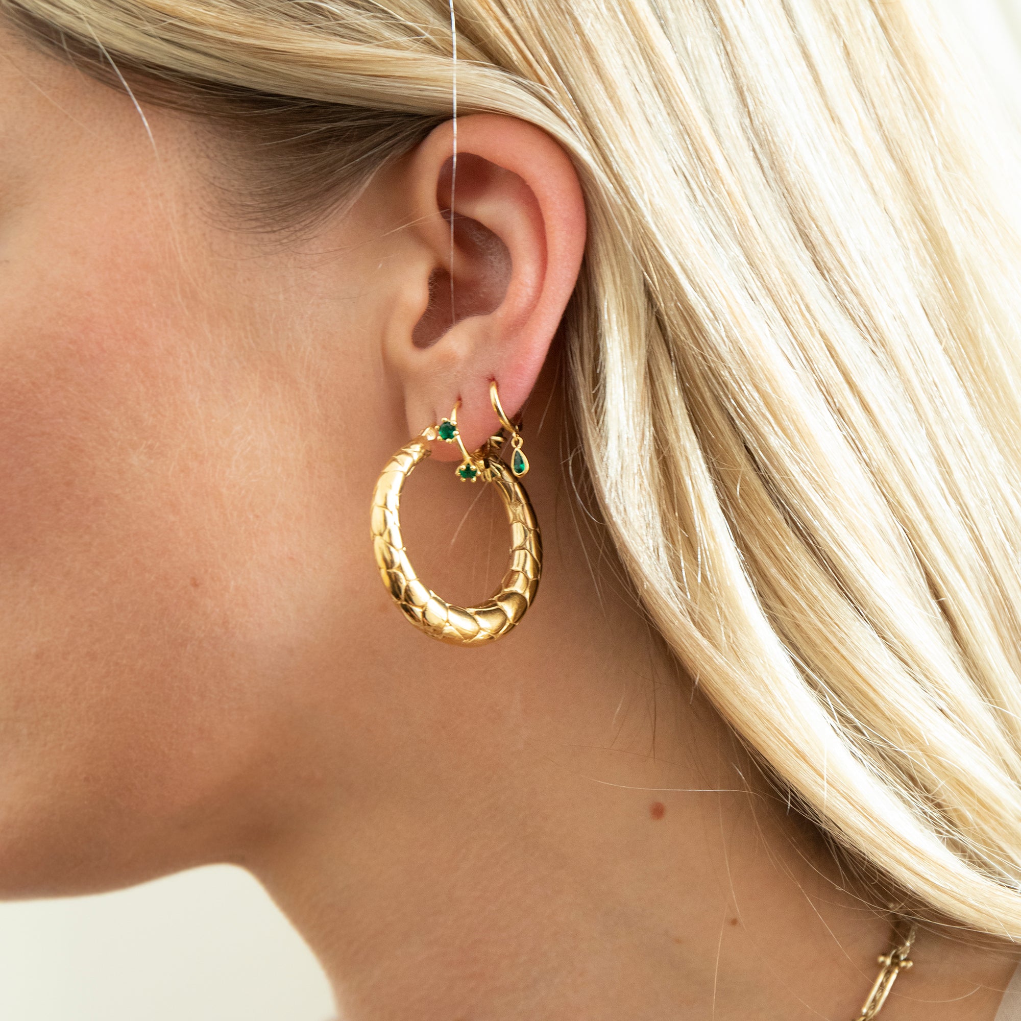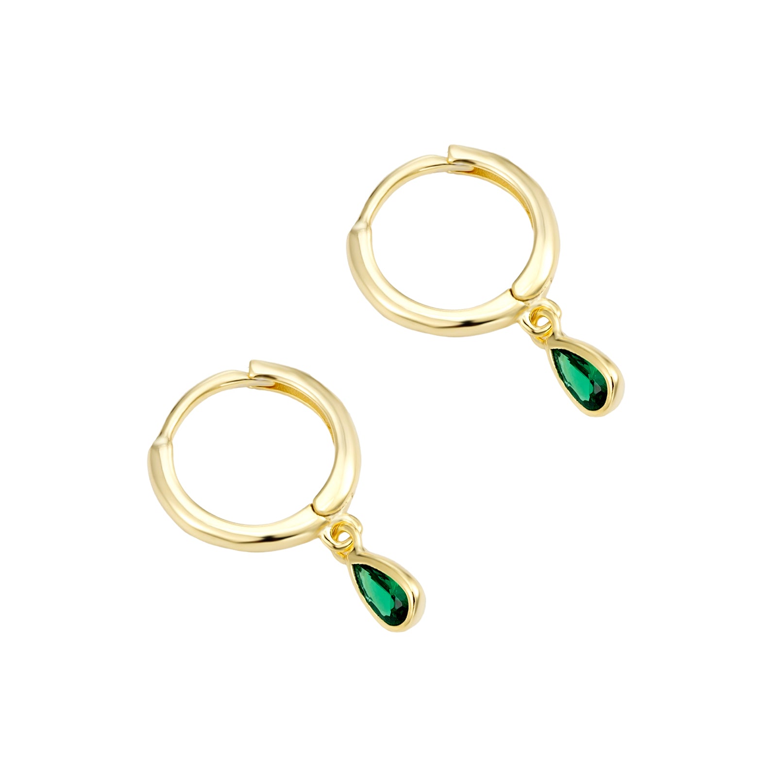 18ct Gold Vermeil Emerald CZ Teardrop Charm Hoops