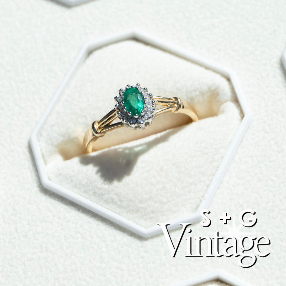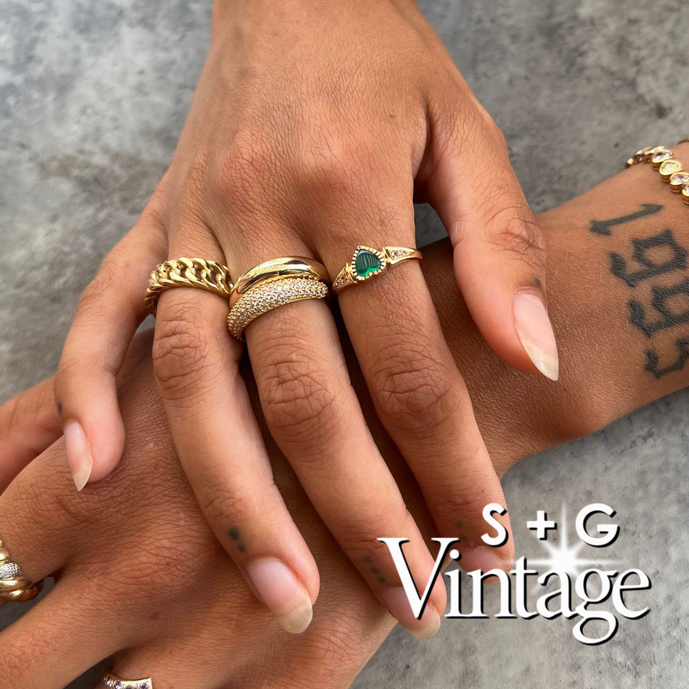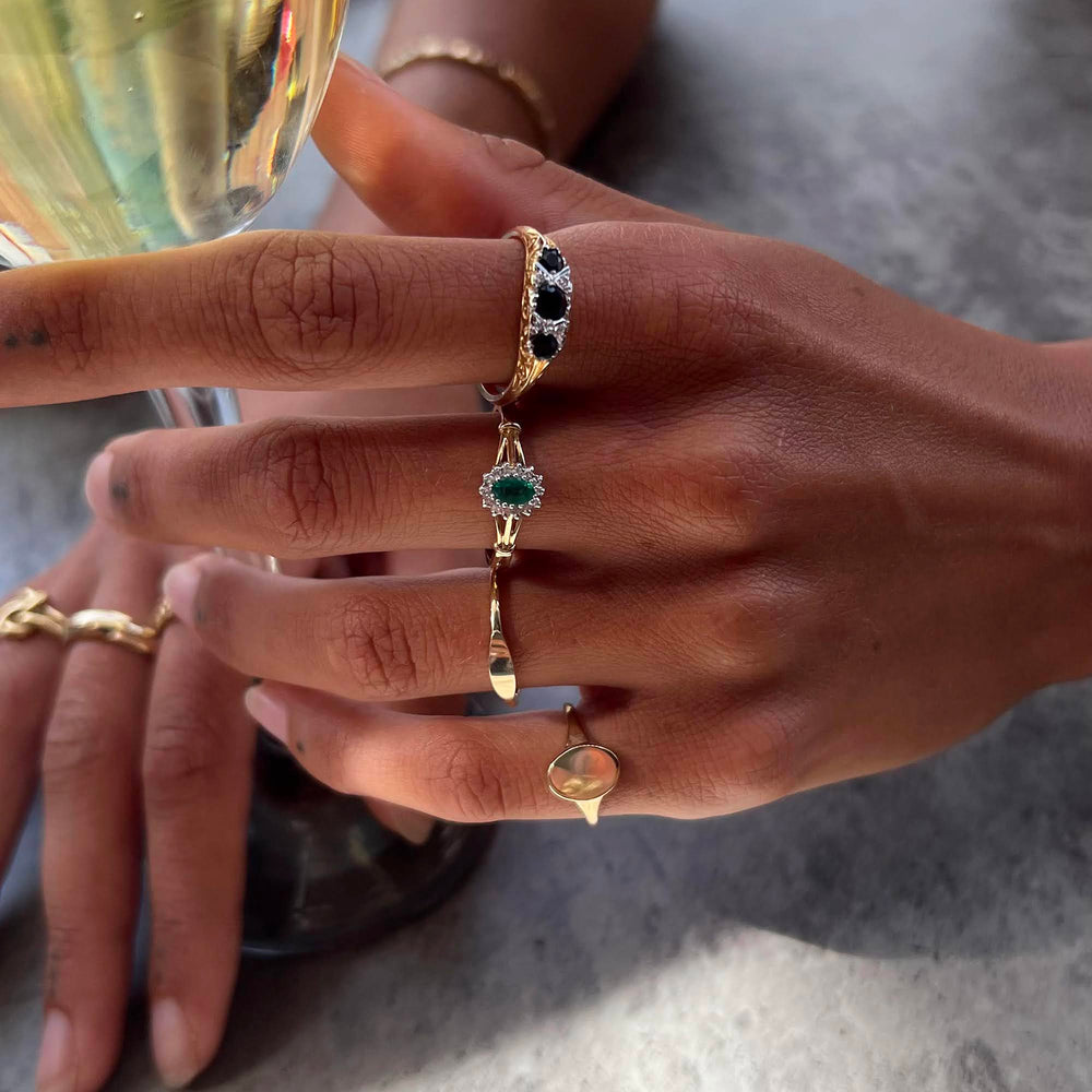 18ct Gold Vermeil Starry Emerald Domed Ring