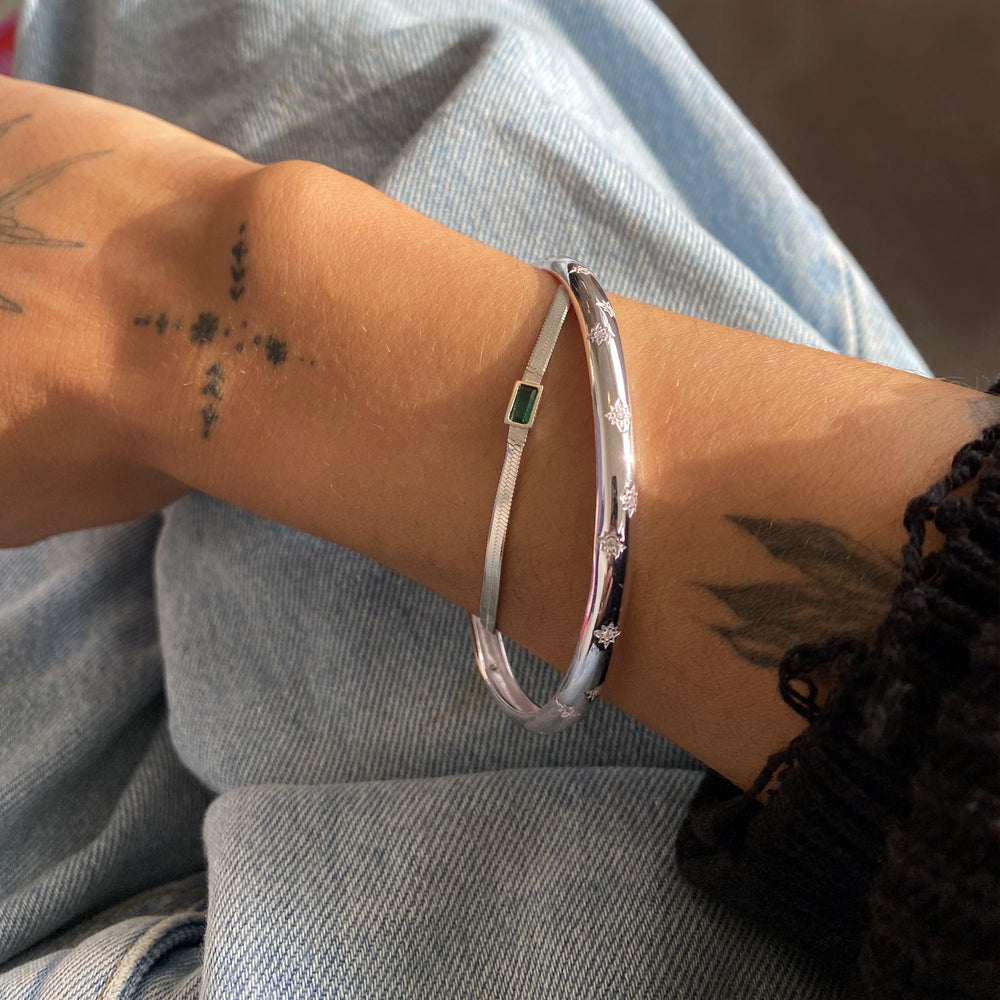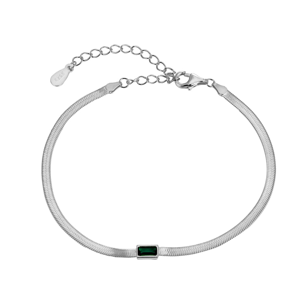 Sterling Silver Emerald CZ Snake Chain Necklace
