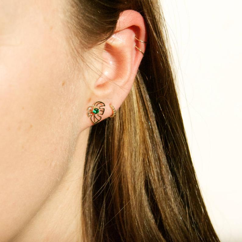 18ct Gold Vermeil Emerald CZ Teardrop Charm Hoops
