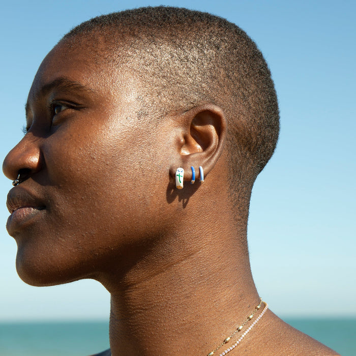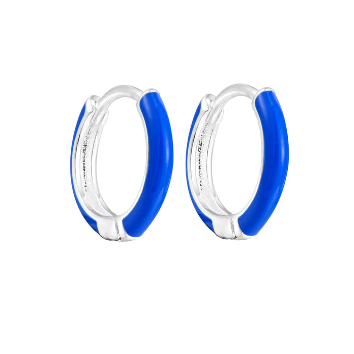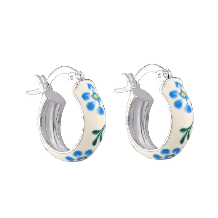 18ct Gold Vermeil Navy Flower Tiny Enamel Hoops