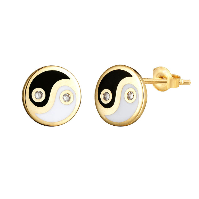 Sterling Silver Enamel Yin Yang CZ Ring