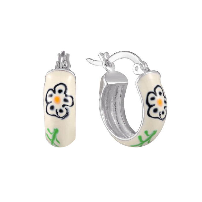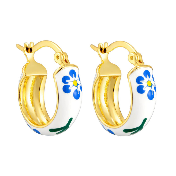 18ct Gold Vermeil Navy Flower Tiny Enamel Hoops