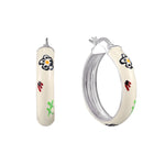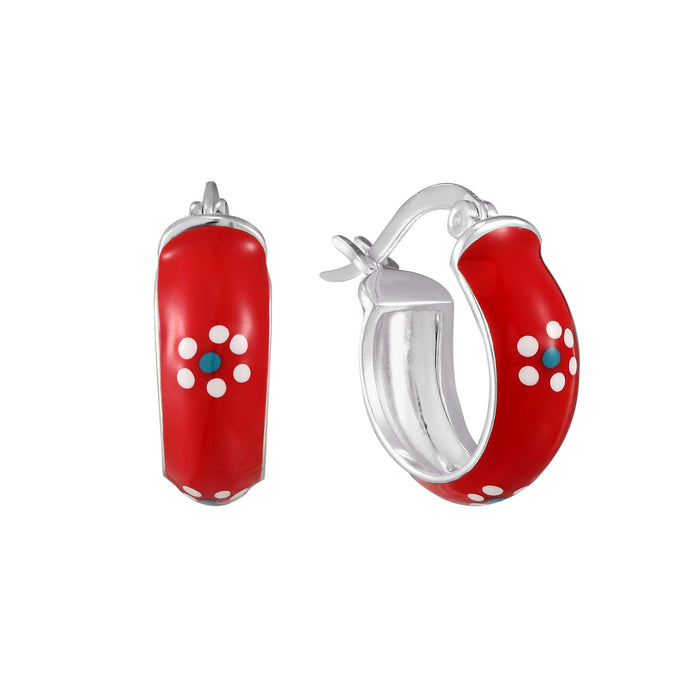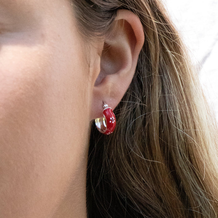 Sterling Silver Red Heart Charm Enamel Hoops