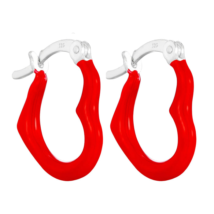 Sterling Silver Red Enamel Heart Hoops