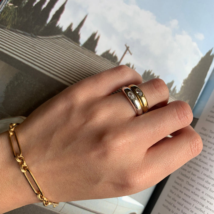 18ct Gold Vermeil Chunky Baguette CZ Ring