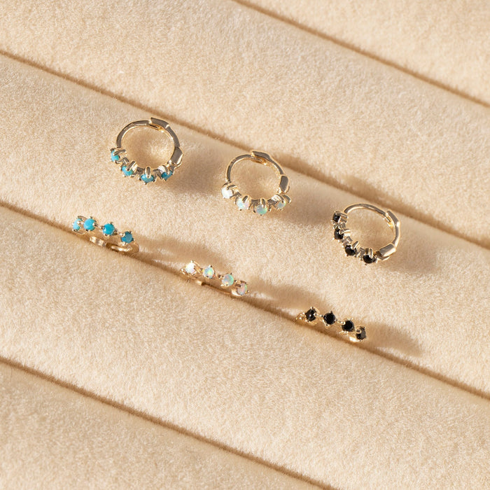 9ct Solid Gold Emerald Studded Huggie Hoops