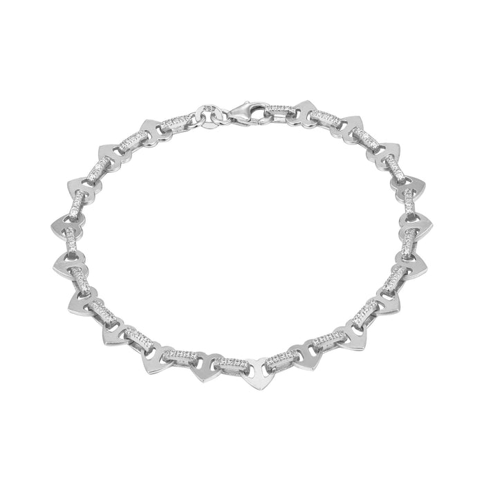 Sterling Silver Heart CZ Mariner Chain Bracelet