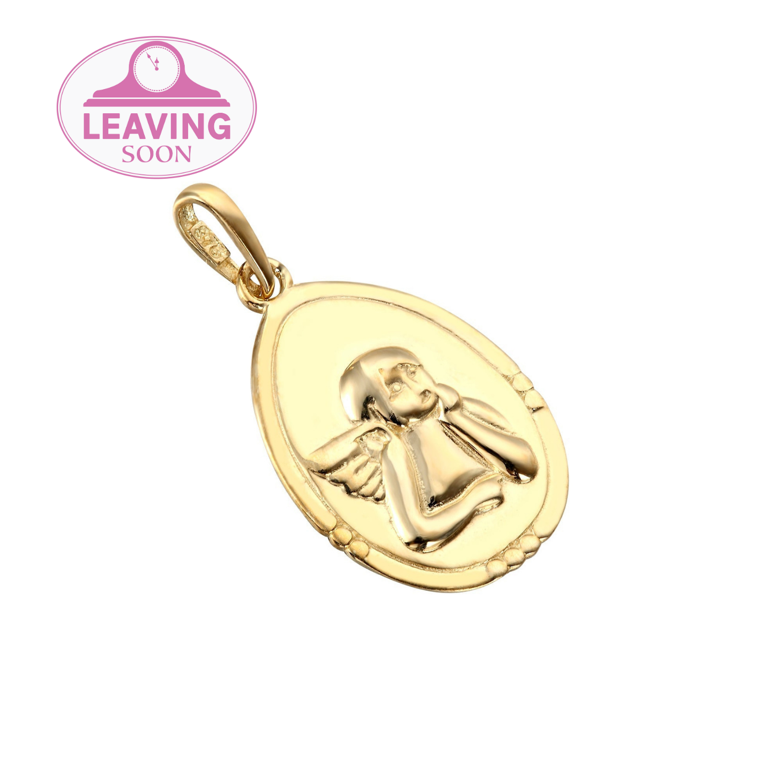 9ct Solid Gold Oval Cherub Charm Pendant.