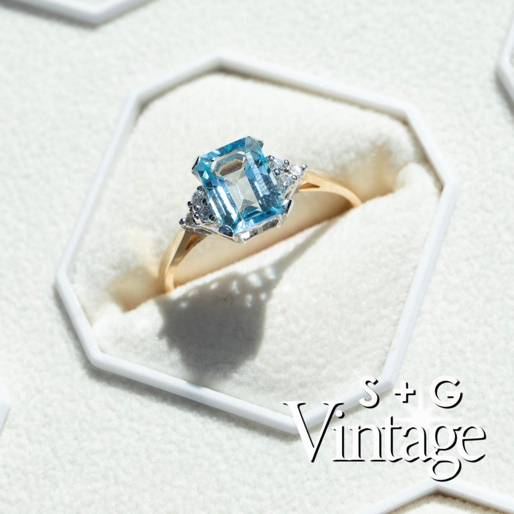 Vintage 9ct Solid Gold Topaz and Diamond Ring