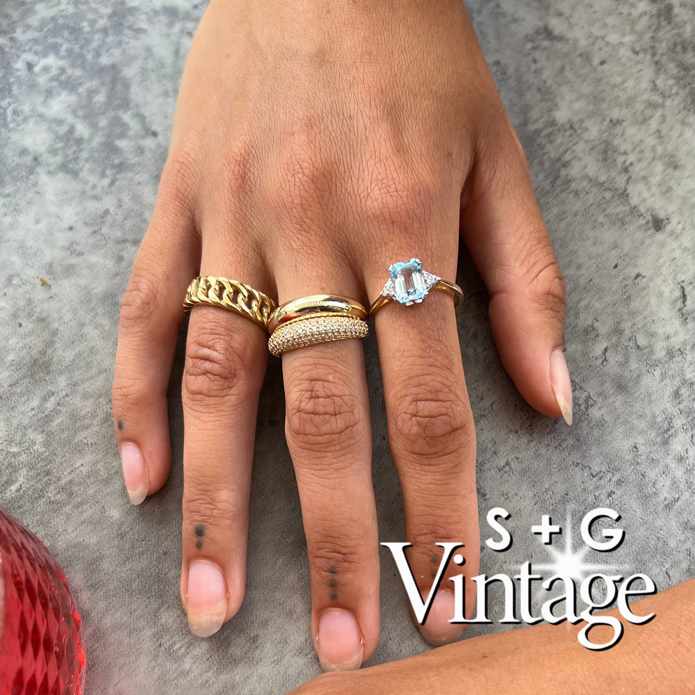 Vintage 9ct Solid Gold Topaz Diamond Ring