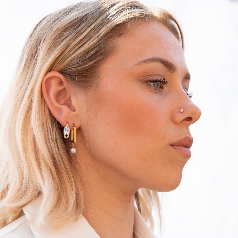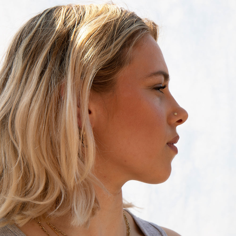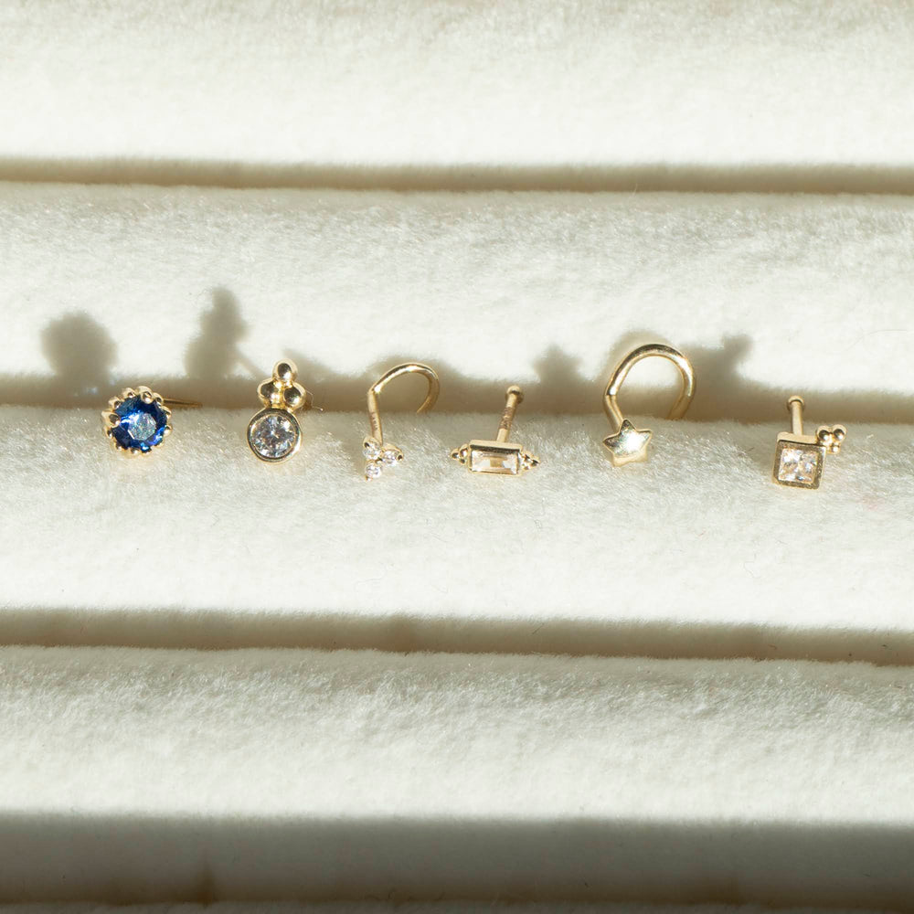 9ct Solid Gold Square CZ Dotted Nose Stud