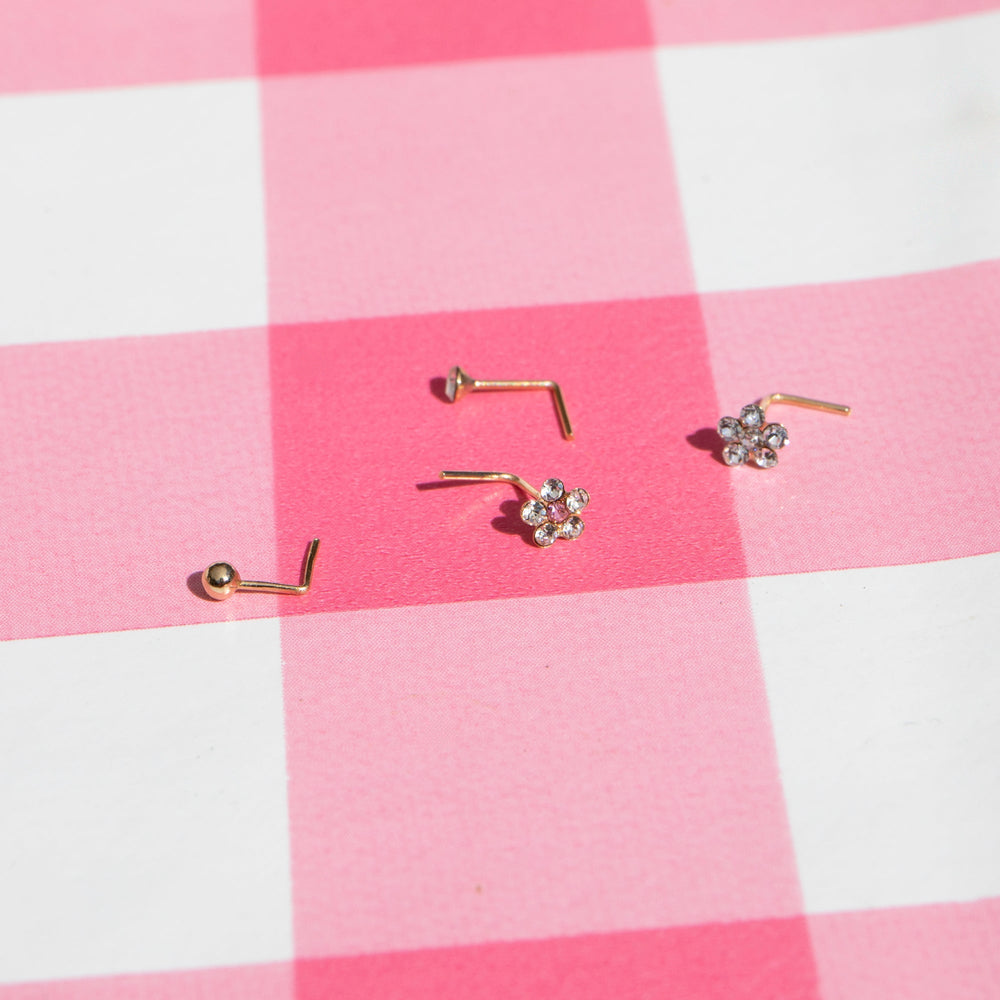 9ct Solid Gold Pink Crystal Flower Nose Stud