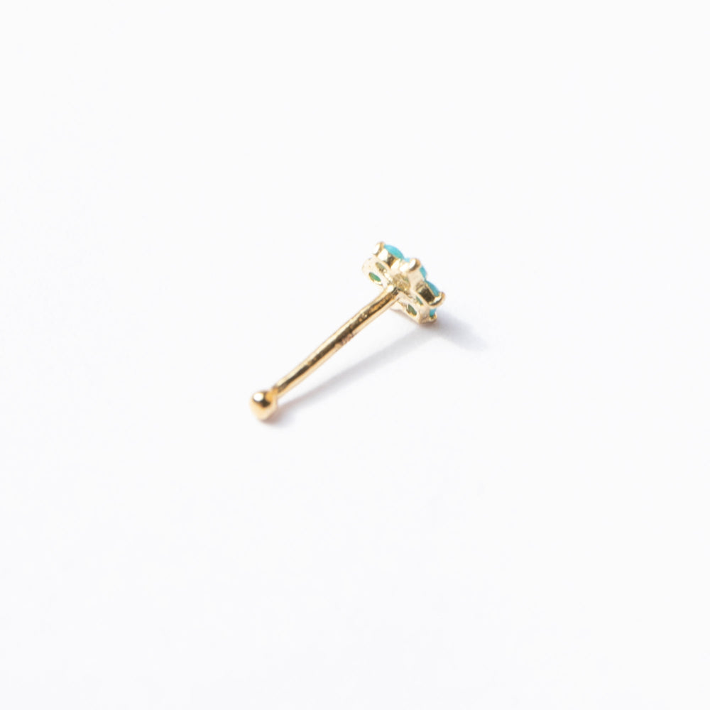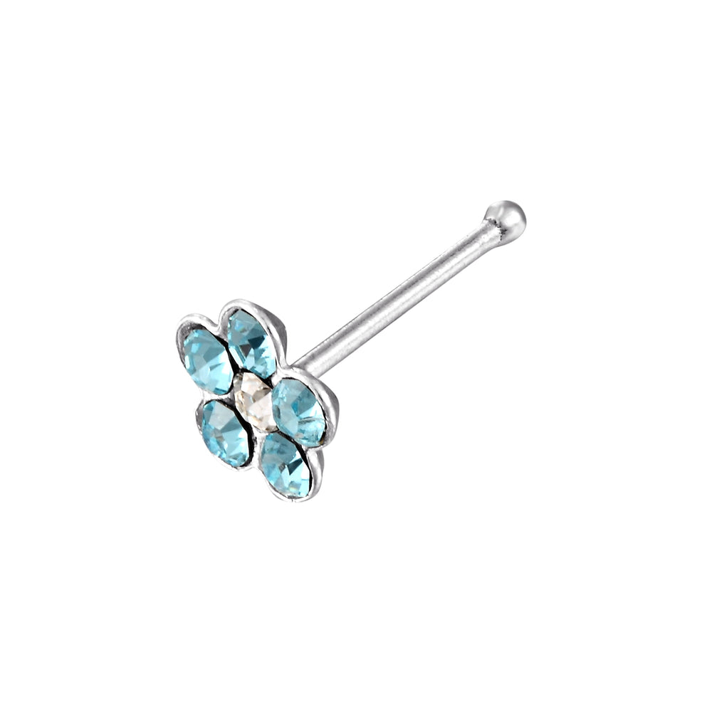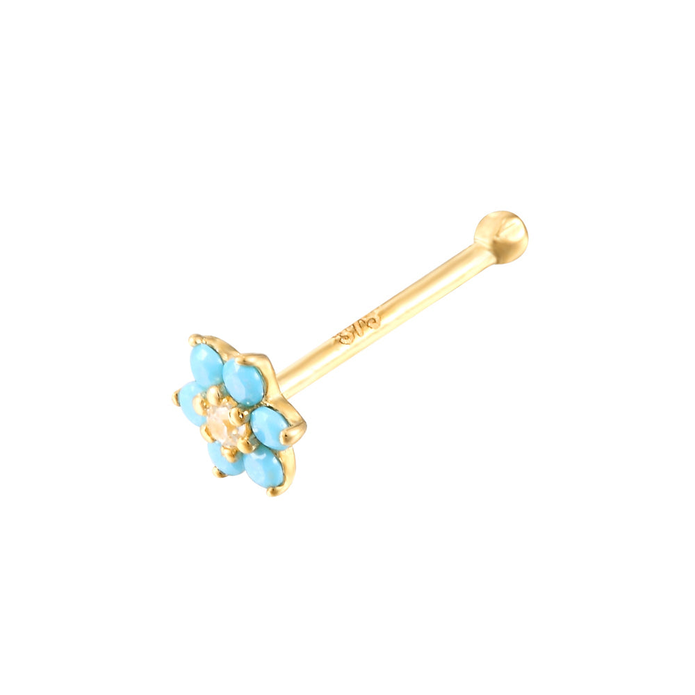 9ct Solid Gold Aquamarine CZ Bezel Nose Stud