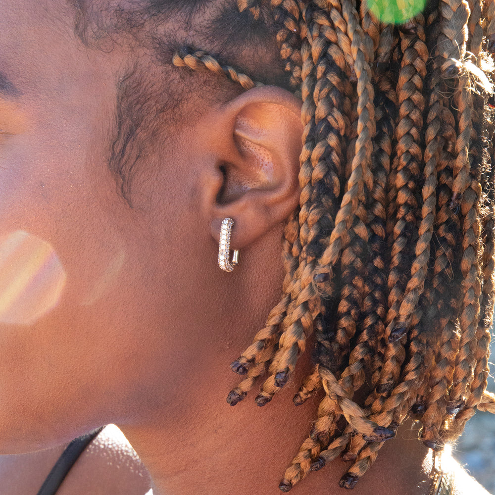 9ct Solid White Gold Star Charm Cubic Zirconia Hoops