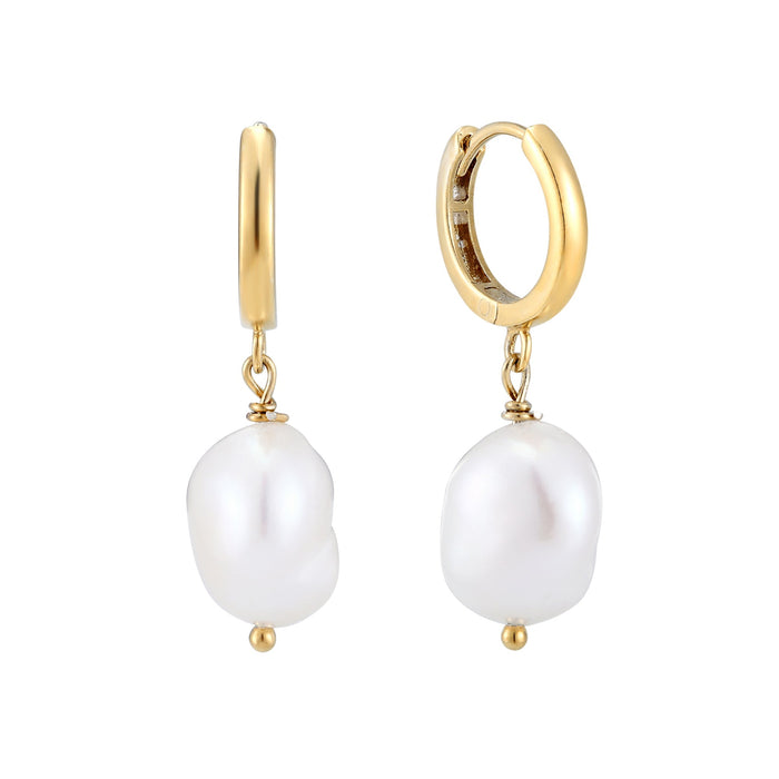 18ct Gold Vermeil Baroque Pearl Hoop Earrings
