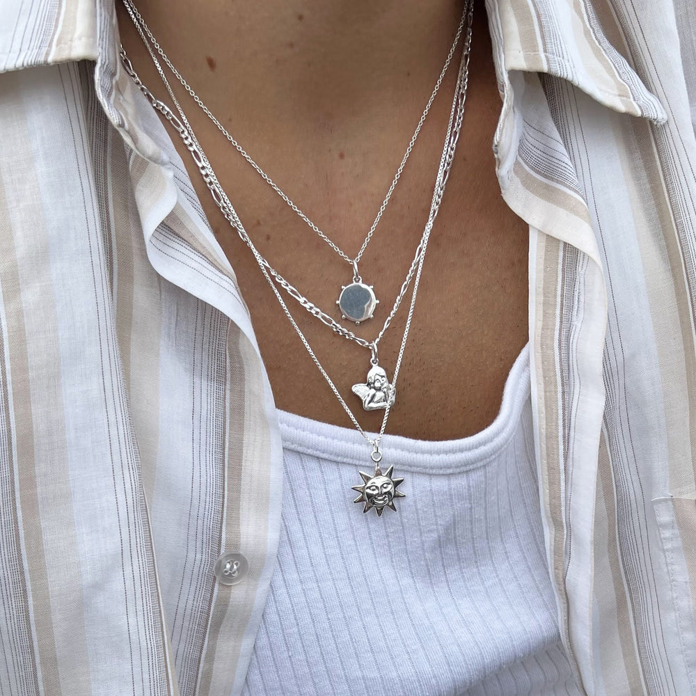 Sterling Silver Figaro Chain Bracelet (Mens)