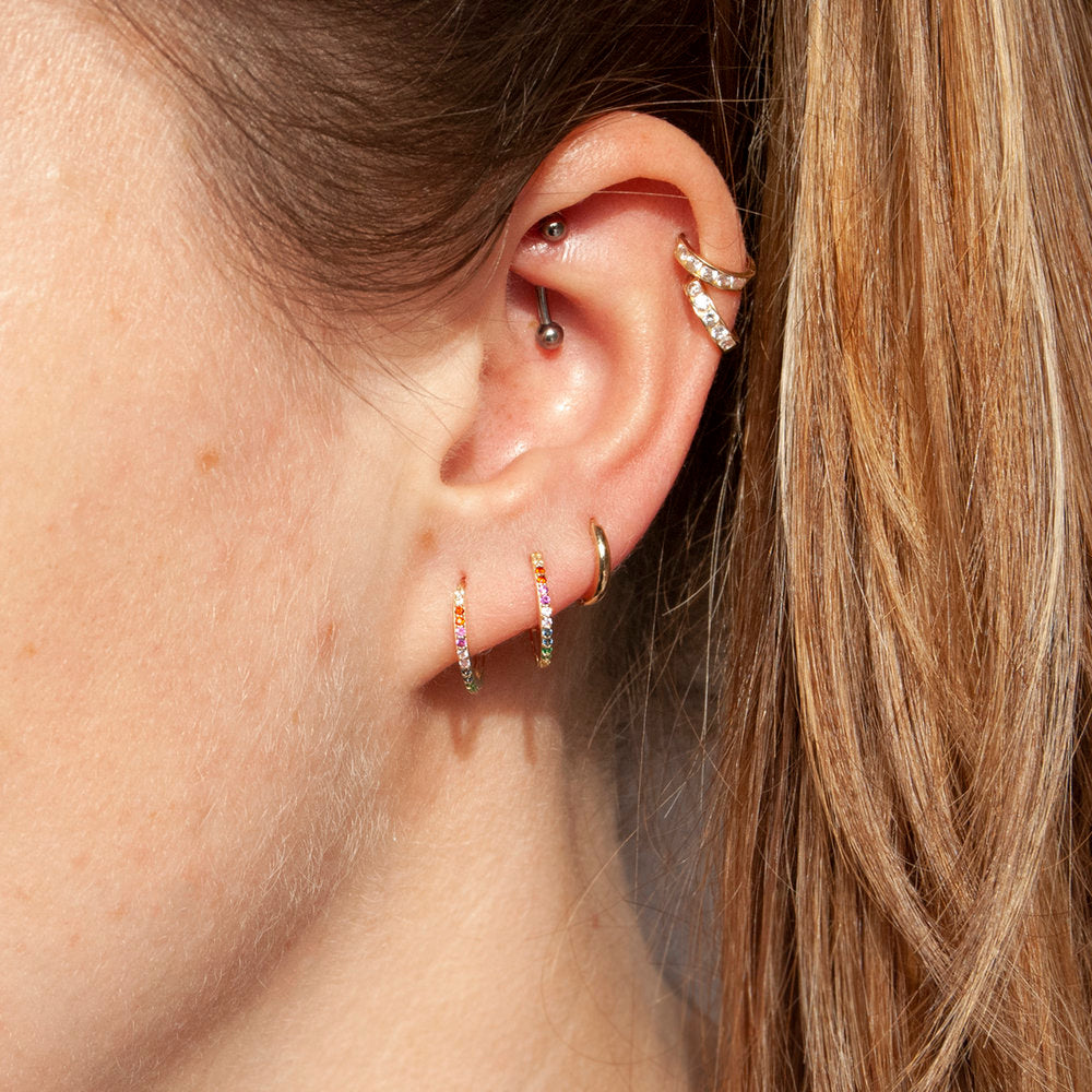 9ct Solid Gold Rainbow CZ Hoop Earrings