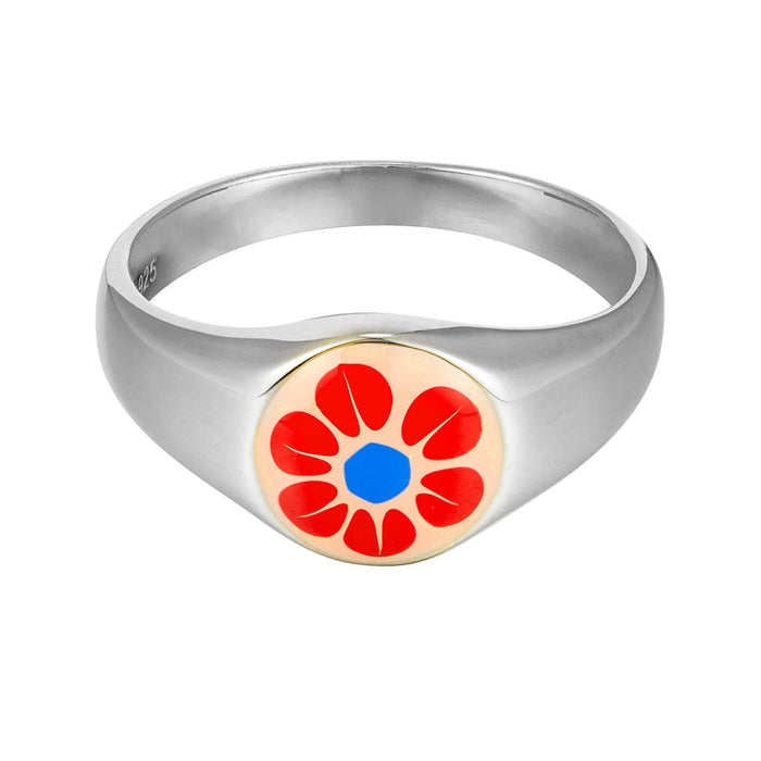 18ct Gold Vermeil Red Enamel Signet Ring