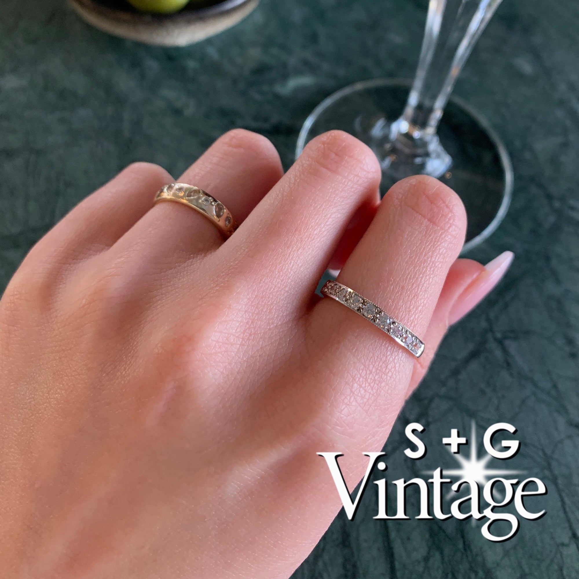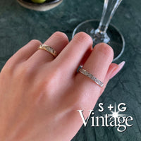 Gold ring with diamonds in a hexagonal box, featuring 'S + G Vintage' branding - seolgold