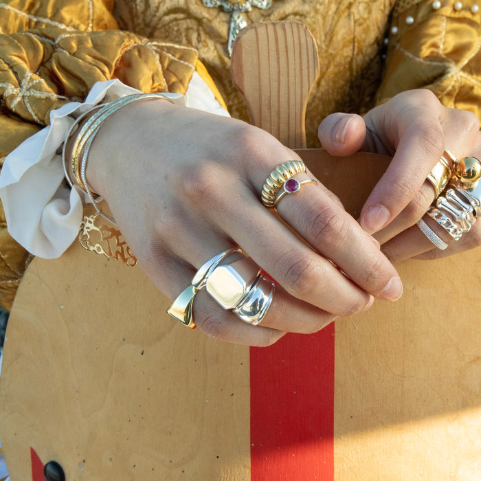 9ct Solid Gold Watermelon Tourmaline Baguette Ring