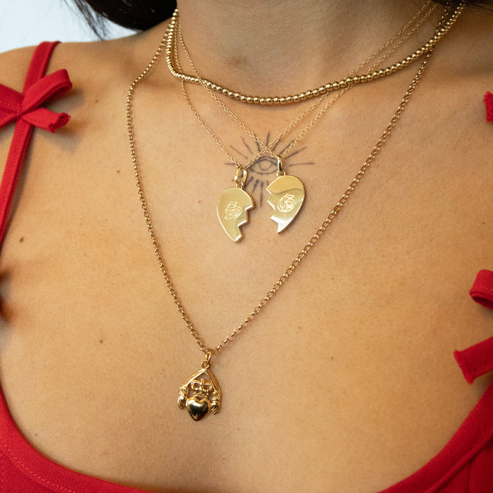 Sterling Silver Heart Charm T-bar Rolo Necklace