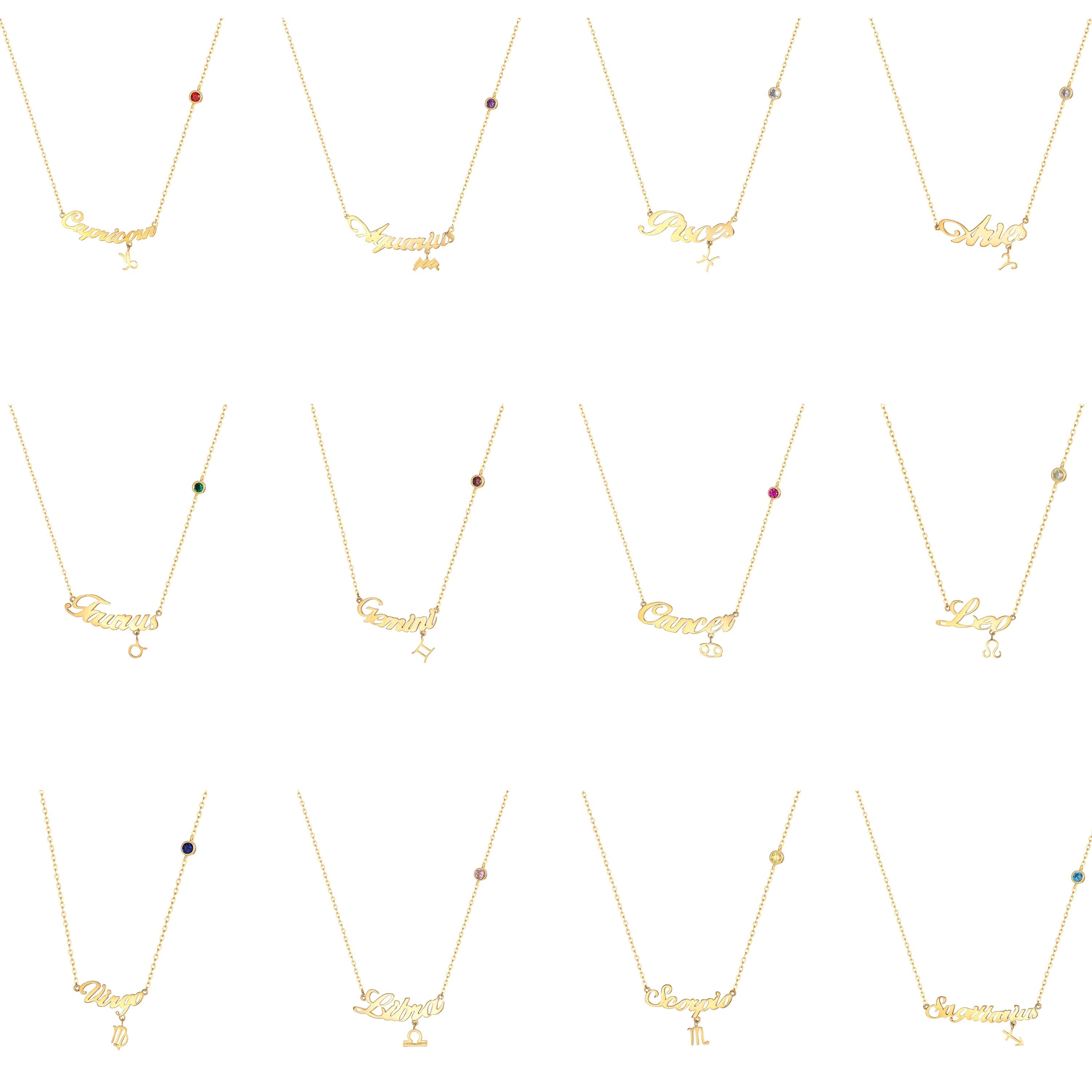 18ct Gold Vermeil Birthstone Star Sign Necklace
