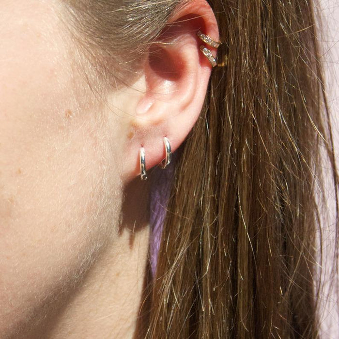 Sterling Silver Birthstone CZ Tiny Hoop Earrings